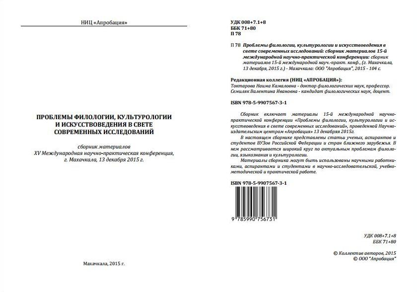 XV Международная научно-практическая конференция «Проблемы филологии, культурологии и искусствоведения в свете современных исследований»