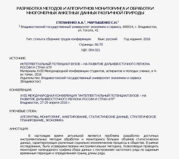 Разработка методов и алгоритмов мониторинга и обработки многомерных анкетных данных различной природы