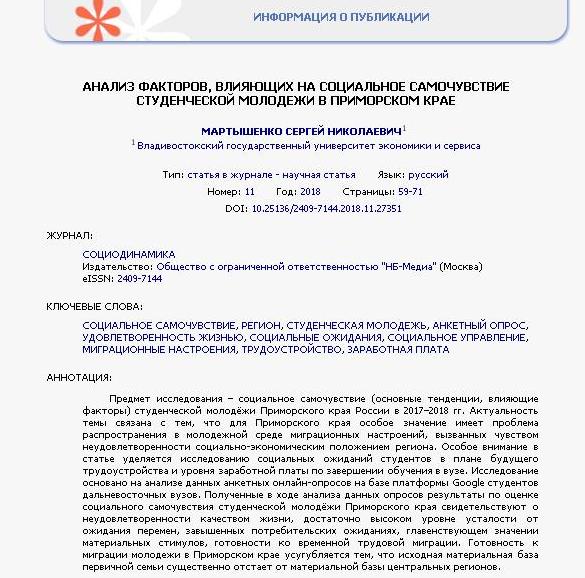 Анализ факторов, влияющих на социальное самочувствие студенческой молодежи в Приморском крае