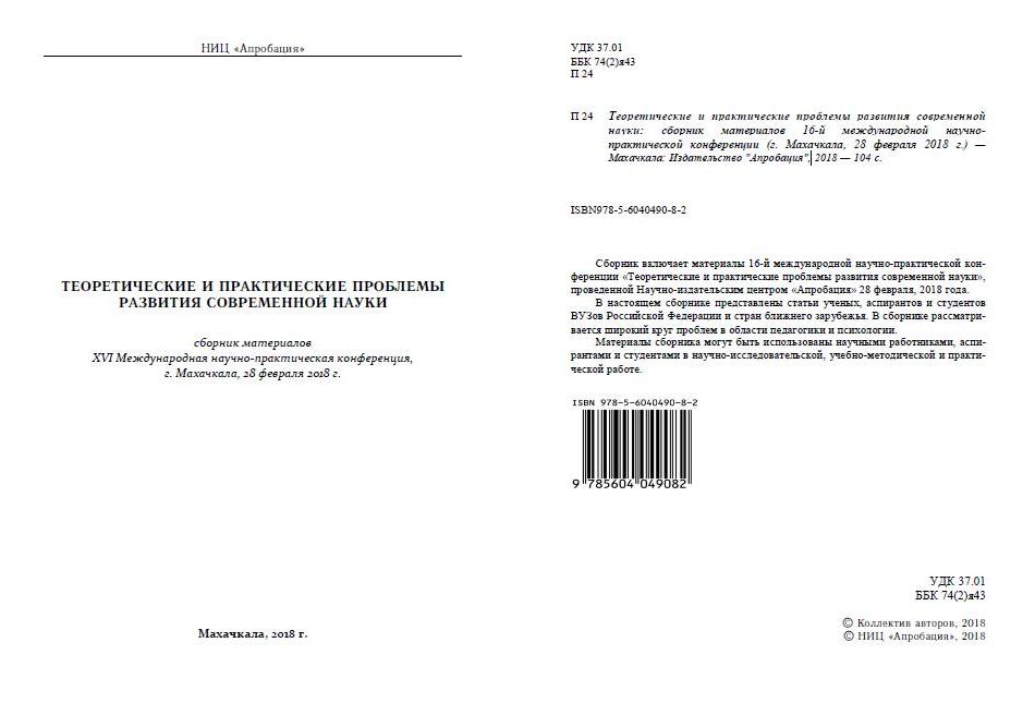 Теоретические и практические проблемы развития современной науки. Сборник материалов XVI Международная научно-практическая конференция